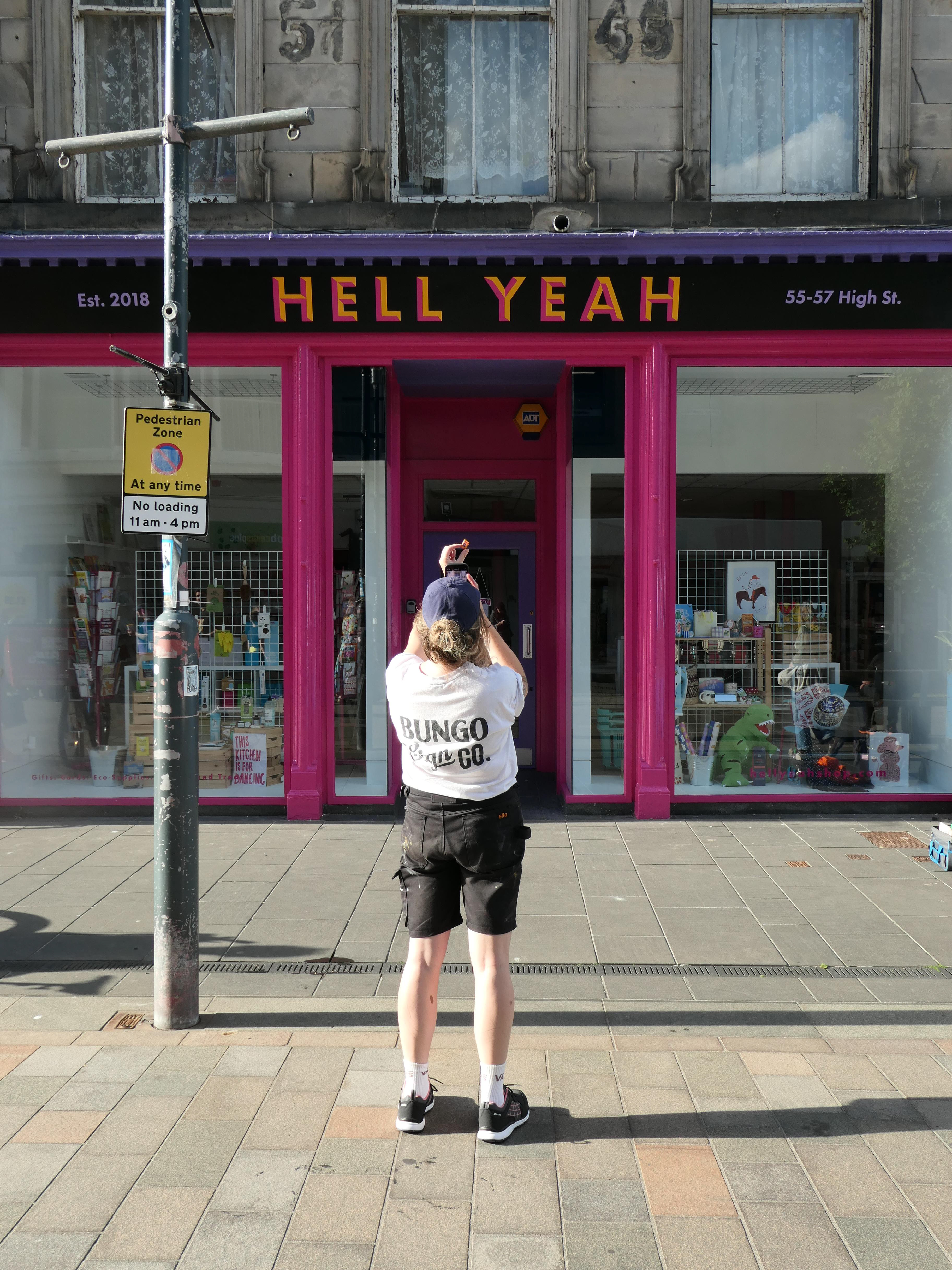 Tagging along with Rachel meant getting to help bring her fun and colourful designs to life. Like this yellow, purple pink lettering for "Hell Yeah" in Perth.