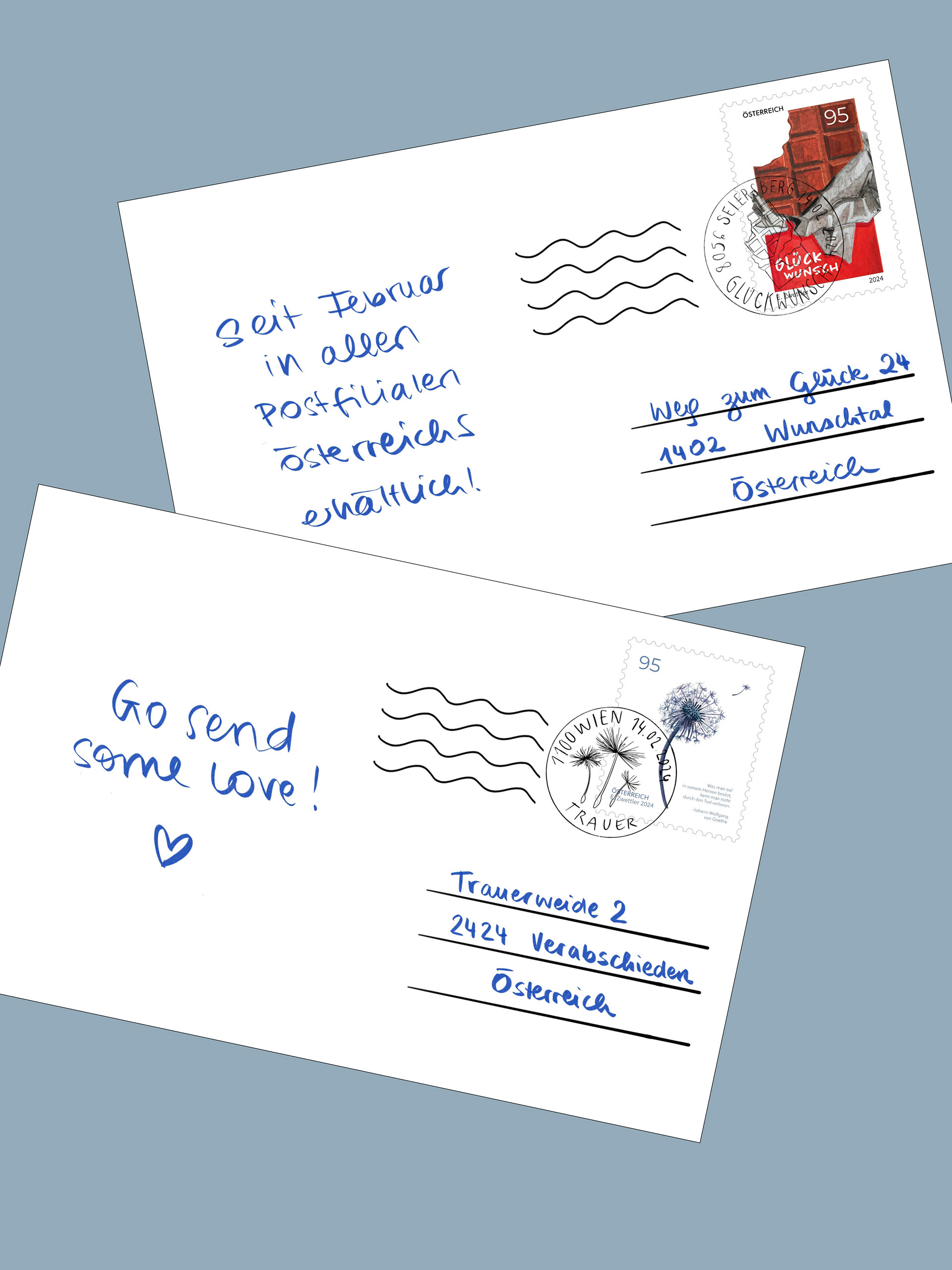 Available at any Austrian post office, these two special stamp designs won in a competition.